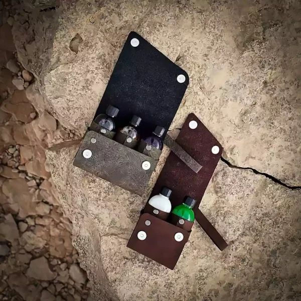- با دوام و ضد ضربه: جنس این کیف از چرم مصنوعی می باشد و دارای دکمه های آهنربایی است تا از افتادن بطری ها به داخل کیف شما جلوگیری شود