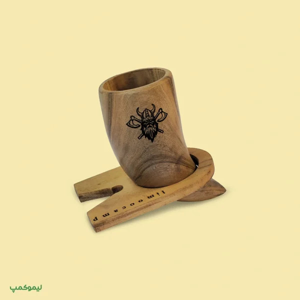 مینی شاخ وایکینگی پایه دار چوبی (ماگ شاخ گاوی کوچک)
