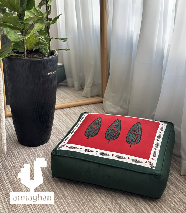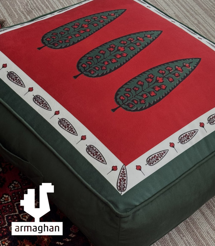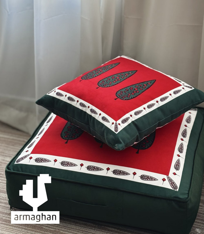 نوع نشیمن: نشیمن سرو ایرانی قرمز رویه طرح دار با بدنه سبز